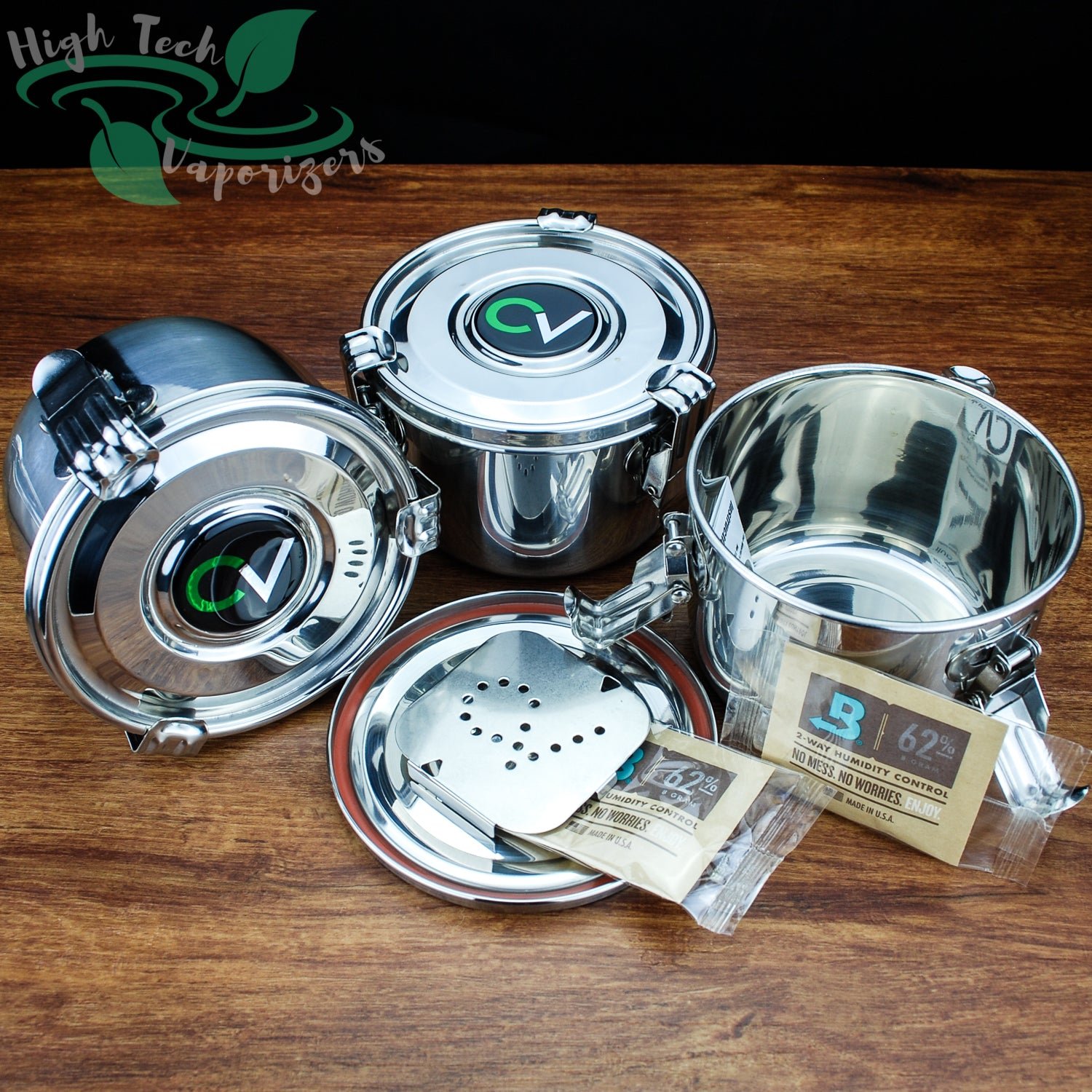 CVault`s are constructed out of high Quality food grade stainless steel and the lid is lined with a silicone seal to ensure your CVault is airtight. There is also a slot in the lid where the Boveda humidipak can be installed.