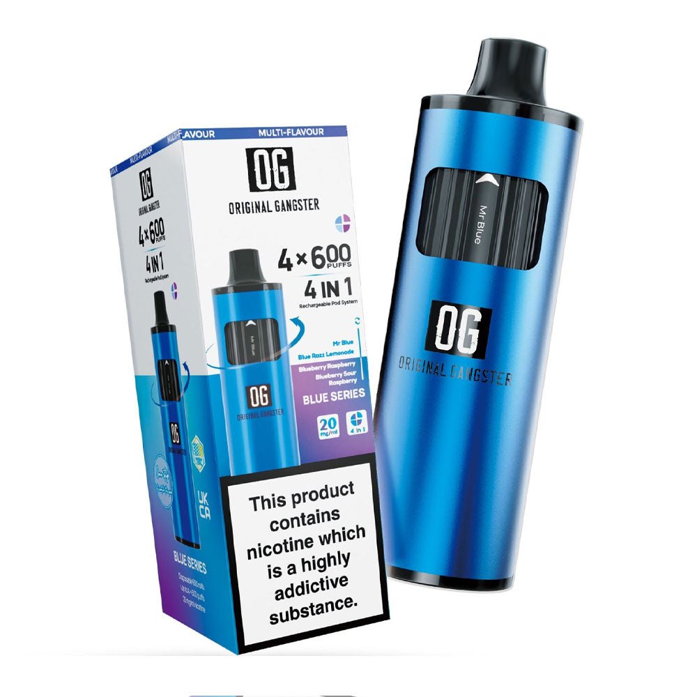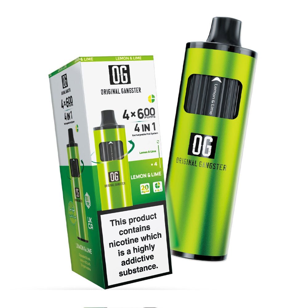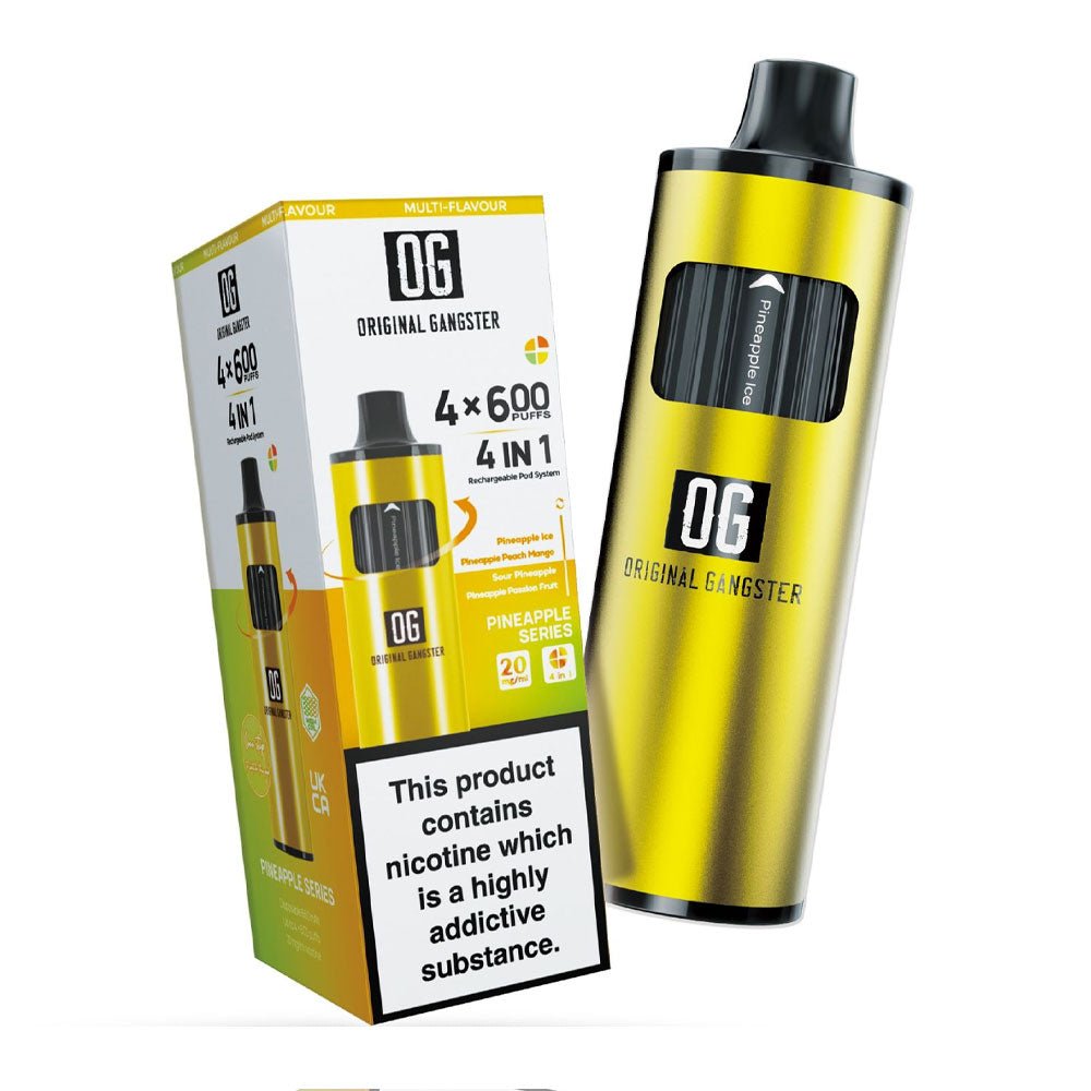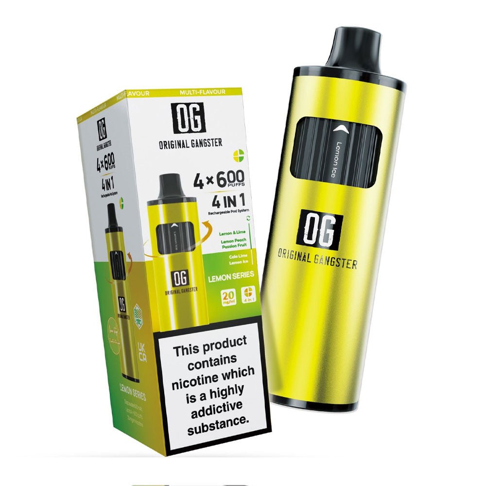 Original Gangster OG 2400 4-in-1 Disposable Vape offers 2400 puffs with four different flavours. The device is rechargeable and offers uninterrupted vaping.