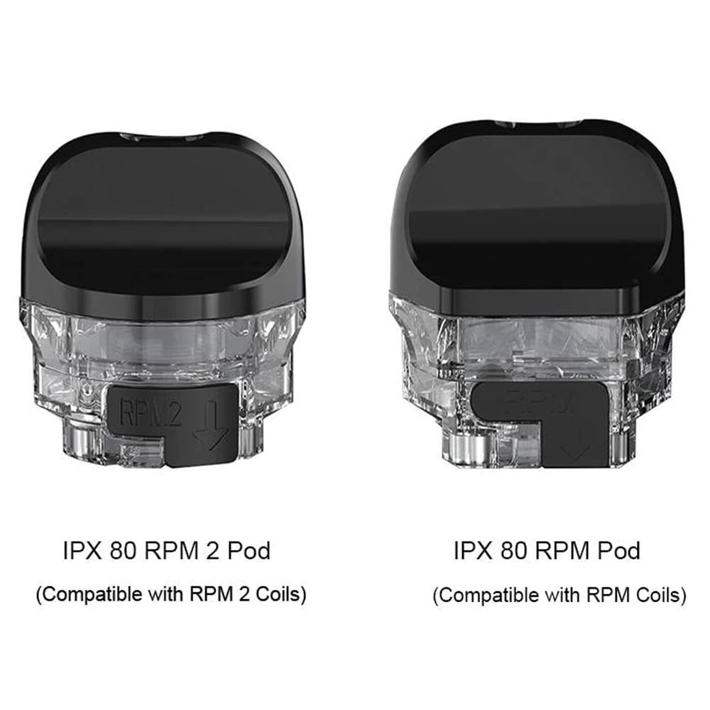The SMOK IPX80 Replacement Pods have a 2ml pod size and are compliant with the RPM and RPM 2 coil series, which is loaded from the bottom in a leak-free refillable pod.