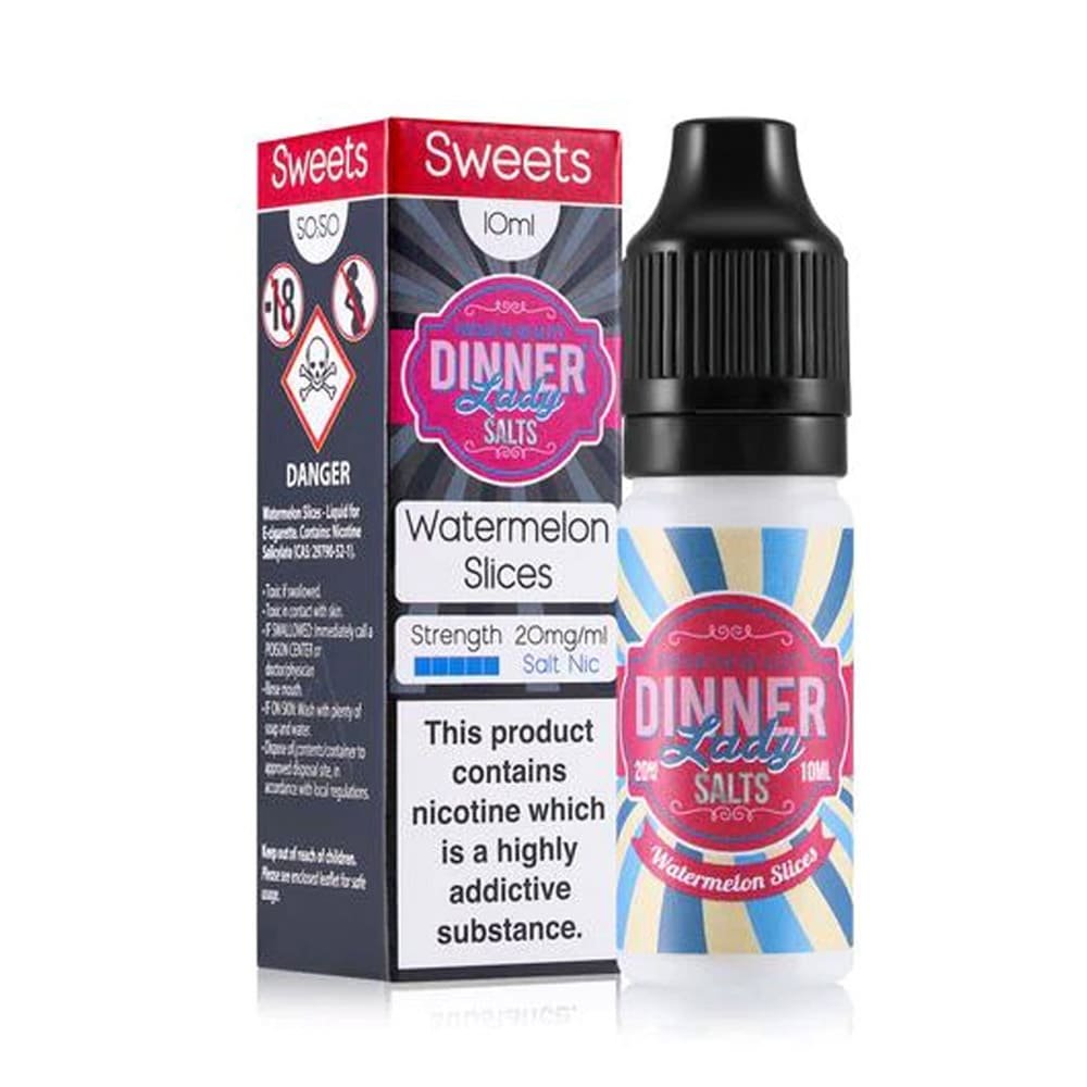 Watermelon Slices By Dinner Lady is a 10ml nic salt vape liquid. You can choose this vape liquid if you want to take your vaping experience to the next level. This TPD-compliant e-juice is available in 10mg and 20mg nicotine strength. You can get it easily from any online vape shop in the UK; Dinner Lady Watermelon Slices 10ml nic salt is quite affordable and within your budget. This e-liquid is available in a recyclable bottle with a child-resistant cap and tamper seal. Watermelon Slices nic salt e liquid has a sweet and refreshing watermelon flavour.